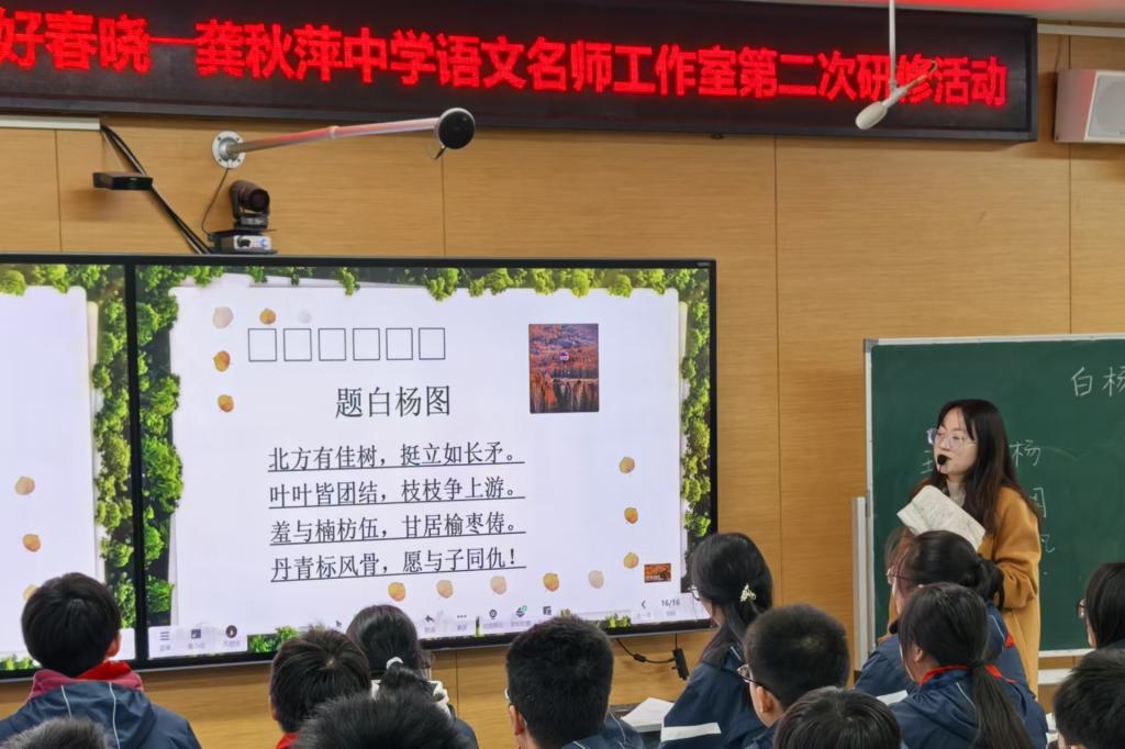 随后,孔煜凌老师引领八年级员工走进《白杨礼赞》的文学世界。她以细腻入微的讲解和生动鲜活的引导,助力员工深刻理解白杨树所蕴含的坚韧不拔、团结向上的精神品质。课堂上,孔老师高度注重对员工朗读技巧的雕琢和文学鉴赏能力的培养,以绘画、音乐、文学三者相结合的形式提高员工的审美能力。师生之间互动频繁、默契十足,员工们全身心沉浸于茅盾先生饱含深情的文字海洋之中。