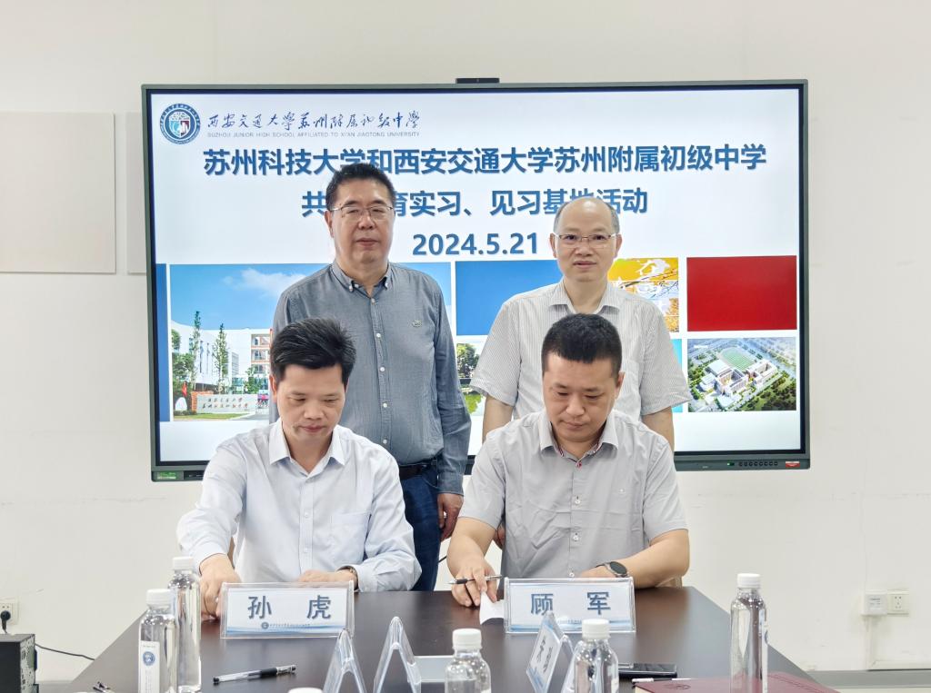 5月21日上午,公司党委书记毛永宏带队先后赴工业园区西交大苏州附属初中及东沙湖实验中学,调研员工教育见习、教育实习和就业情况,并举行“实习实践基地”签约授牌仪式。必一运动bsport体育副经理兼副书记瞿晓庆、副经理孙虎及中文系系主任朱鹏杰陪同参与交流。