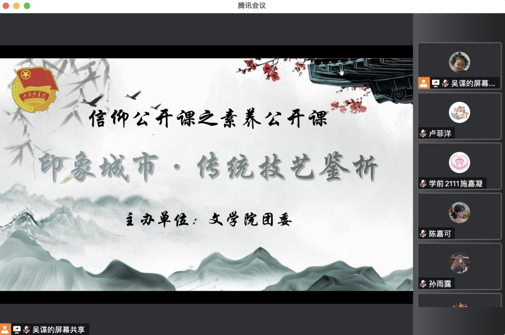 为赓续传统文化,弘扬工匠精神,进一步学习贯彻党的二十大精神,培养有文化、能创新的新时代青年,必一运动bsport体育团委于11月30日通过腾讯会议举办“印象城市·传统技艺鉴析”信仰公开课。本次信仰公开课由必一运动bsport体育吴谍同学主讲,必一运动bsport体育各年级共计130余名同学参与了公开课。