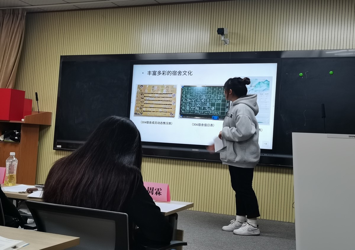 本次答辩顺序由各班负责人抽签决定,分为班级展示与现场答辩两个环节。首先,各班负责人抽签决定现场答辩的问题。然后,通过简洁明了的PPT从班团建设、学风建设、宿舍建设班级特色活动、个人与集体荣誉等多个方面向在场评委与观众们展示各班的良好精神风貌。接着,各班负责人又条理清晰地回答了抽到的问题以及评委的现场提问。其中,汉师2012的班长陈毓雯用生动的语言向我们展现了汉师2012这一朝气蓬勃、充满热情活力的班集体,并重点介绍了班级开展的许多特色活动,值得其他班级借鉴。同时,广电2012的班长李亚美详细介绍了班级的基本情况和个人、集体在各项活动中获得的奖项,同学们都在各自的领域中绽放着独特的风采。在六组负责人答辩结束后,就进入了严肃紧张的打分环节。