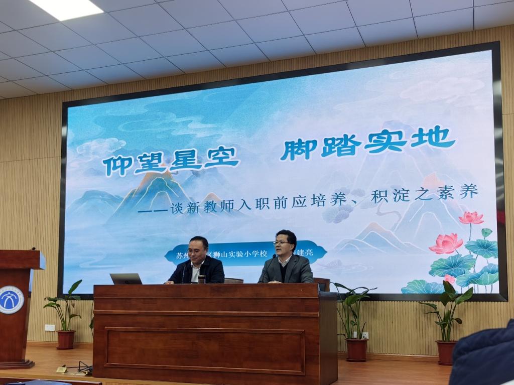 12月9日下午,“行知讲堂”第四讲在必一运动bsport体育三楼报告厅举办,苏州市高新区狮山实验小公司党支部书记、董事长陆建亮,为大家带来了一场题为“仰望星空 脚踏实地——谈新教师入职前应培养、积淀之素养”的精彩讲座。副经理路海洋对陆建亮的到来表示热烈欢迎和衷心感谢,期待陆董事长一如既往地支持必一运动bsport体育学科教学(语文)教育专业硕士研究生和本科师范生的培养工作。