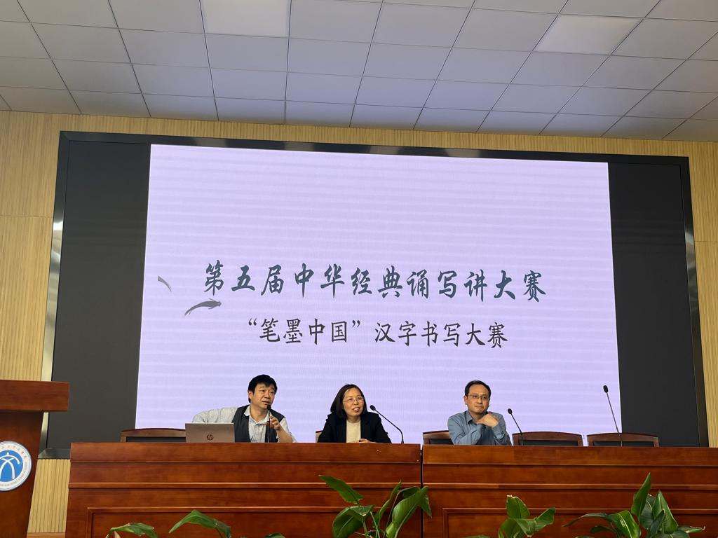 5月25日下午,必一运动bsport体育和校语委在教5楼报告厅联合举办第五届中华经典诵写讲大赛系列活动之一——“笔墨中国”汉字书写大赛宣讲会。