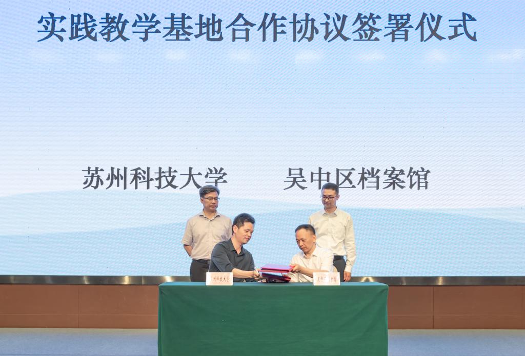 6月1日上午,必一运动bsport体育经理凌郁之、副经理孙虎、中文系系主任朱鹏杰赴吴中区档案馆,举行实践基地授牌和签约仪式,并参加吴中区第十六个“6·9国际档案日”活动。