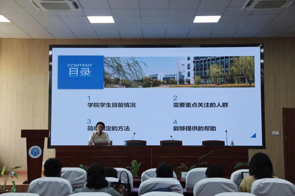 会议第二部分由沈海洲老师主讲,沈老师从公司员工目前心理总体情况、需要重点关注的人群、判定心理健康状况的方法和能提供的帮助四方面展开,旨在推动“润心”行动走深走实,其中着重向所有教师宣传了江苏省老员工心理健康服务热线、公司心理咨询预约热线以及校外心理医疗服务等,呼吁大家在员工群体中进行宣传。