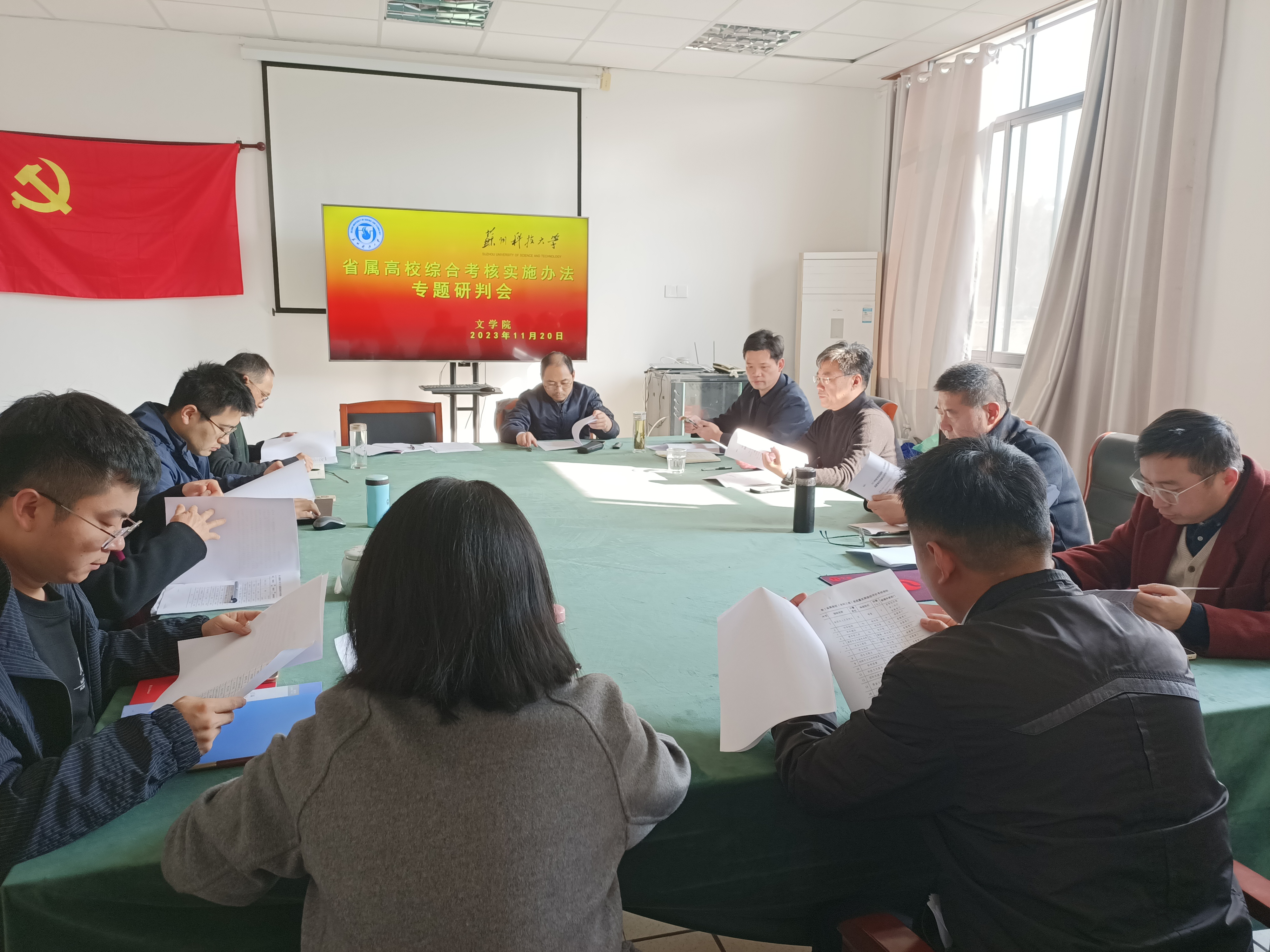 凌郁之首先解读中共江苏省委考核工作委员会印发《2023年度省属高校高质量发展综合考核指标体系及实施细则》的通知文件精神。参会人员根据2023年度省属高校(本科高校)高质量发展绩效评价考核指标体系,在高层次人才及团队、团队结构、团队建设、教学投入度、教学平台及教学成果、专业与课程、员工培养等15个指标逐一认真分析研究评分细则,进一步明晰公司任务数量和质量要求,对照公司实际,抓得分点、补强短板,推动公司综合考核工作取得成效。