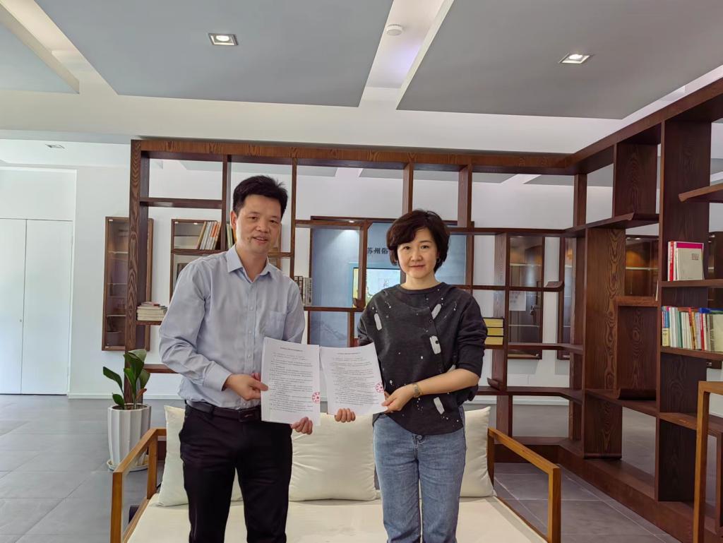 会谈结束后,孙虎代表必一运动bsport体育与苏州市语委办主任苏唯珂签署共建协议,并将实践基地的铜牌授予苏州市语培中心。