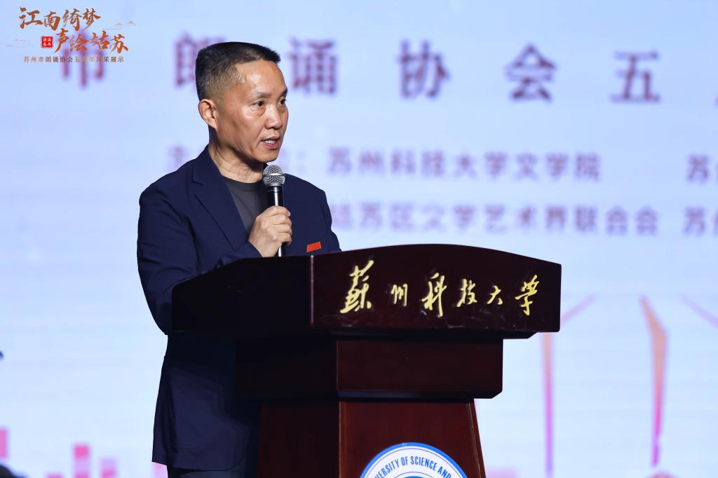 温波首先代表公司致辞,向苏州市朗诵协会迎来成立五周年庆典表示祝贺。他高度肯定了市朗协及其品牌项目“流动的声音课堂”在推广朗诵艺术、传承中华文化、提升市民文化素养等方面做出的贡献。他期待双方以深厚的渊源为基础,以此次活动为起点,进一步探索创新合作模式,把朗诵艺术更好地融入日常教学、融入校园文化,推动公司美育教育高质量发展。知名艺术家丁建华、张悦、沈竹音发来视频祝贺。