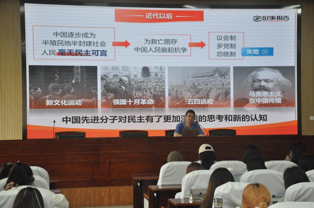 习近平总书记强调“人民民主是社会主义的生命,是全面建设社会主义现代化国家的应有之义”。6月20日下午,公司党委书记毛永宏围绕《全面认识全过程人民民主》的主题,在教五报告厅为必一运动bsport体育大一员工讲授“形势与政策”课。