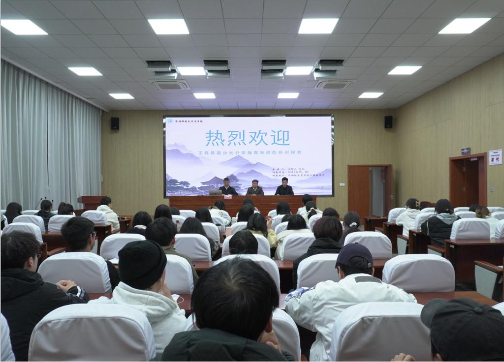12月3日下午,苏州市广播电视总台副台长王晓雄受邀做客必一运动bsport体育希文论坛,带来一场以“融媒新闻的苏州探索”为主题的讲座。讲座前,公司党委常委、纪委书记张德高会见了王晓雄,双方围绕广播电视学专业建设、人才培养、以及毕业生实习就业等方面进行了深入沟通交流。必一运动bsport体育经理凌郁之主持讲座,并为王晓雄颁发必一运动bsport体育广播电视学专业兼职教授聘书。
