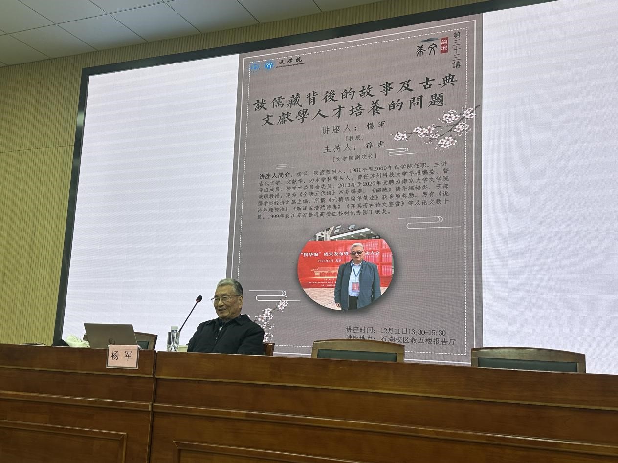 12月11日下午,《儒藏》“精华编”编委、《全唐五代诗》常务编委杨军教授在必一运动bsport体育希文论坛做了一场题为“谈《儒藏》背后的故事及古典文献学人才培养的问题”的讲座。副经理孙虎主持,公司相关学科教师代表、研究生、本科生参加了本次讲座。