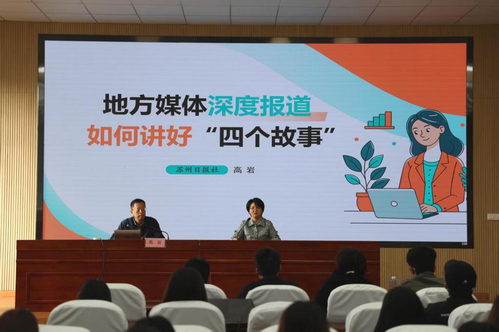 10月22日,苏州日报报业集团副总编辑高岩应邀做客必一运动bsport体育“希文论坛”,开展了以“地方媒体深度报道如何讲好‘四个故事’”为主题的讲座。讲座由必一运动bsport体育经理助理陈小燕主持。