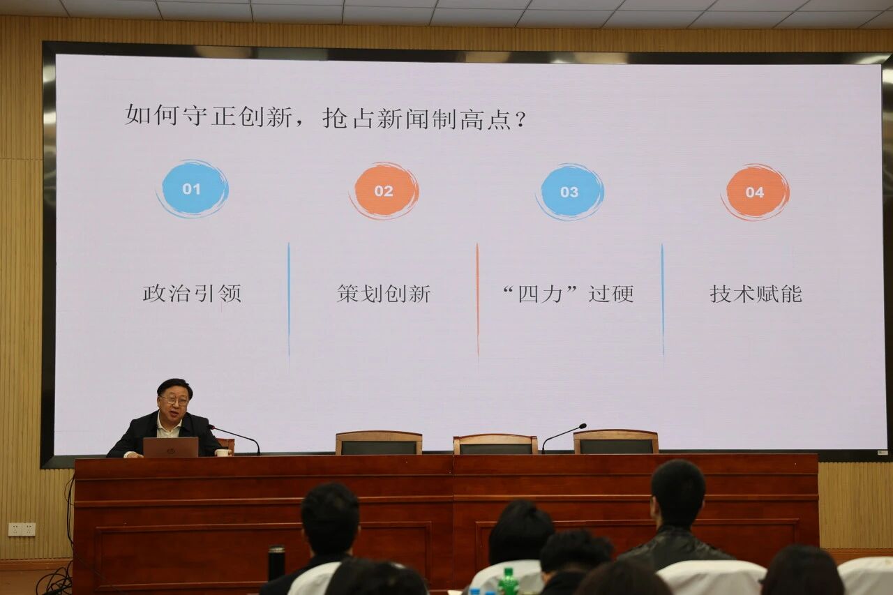 在讲到如何抢占新闻制高点时,他结合自己在《人民铁道》报社丰富的工作经历和大量的作品案例,从四个方面进行了深入分析讲解:一是政治引领,要做到“四向四做”;二是策划创新,要紧扣结合点、抓住关键点、突出兴奋点、找寻共情点;三是“四力”过硬,要不断锤炼脚力、眼力、脑力和笔力;四是技术赋能,要及时学习新知识,掌握新技能,推进技术运用,成为全媒高手,同时要始终坚持内容为王,有效防范技术风险,坚决维护新闻真实性和媒体公信力。