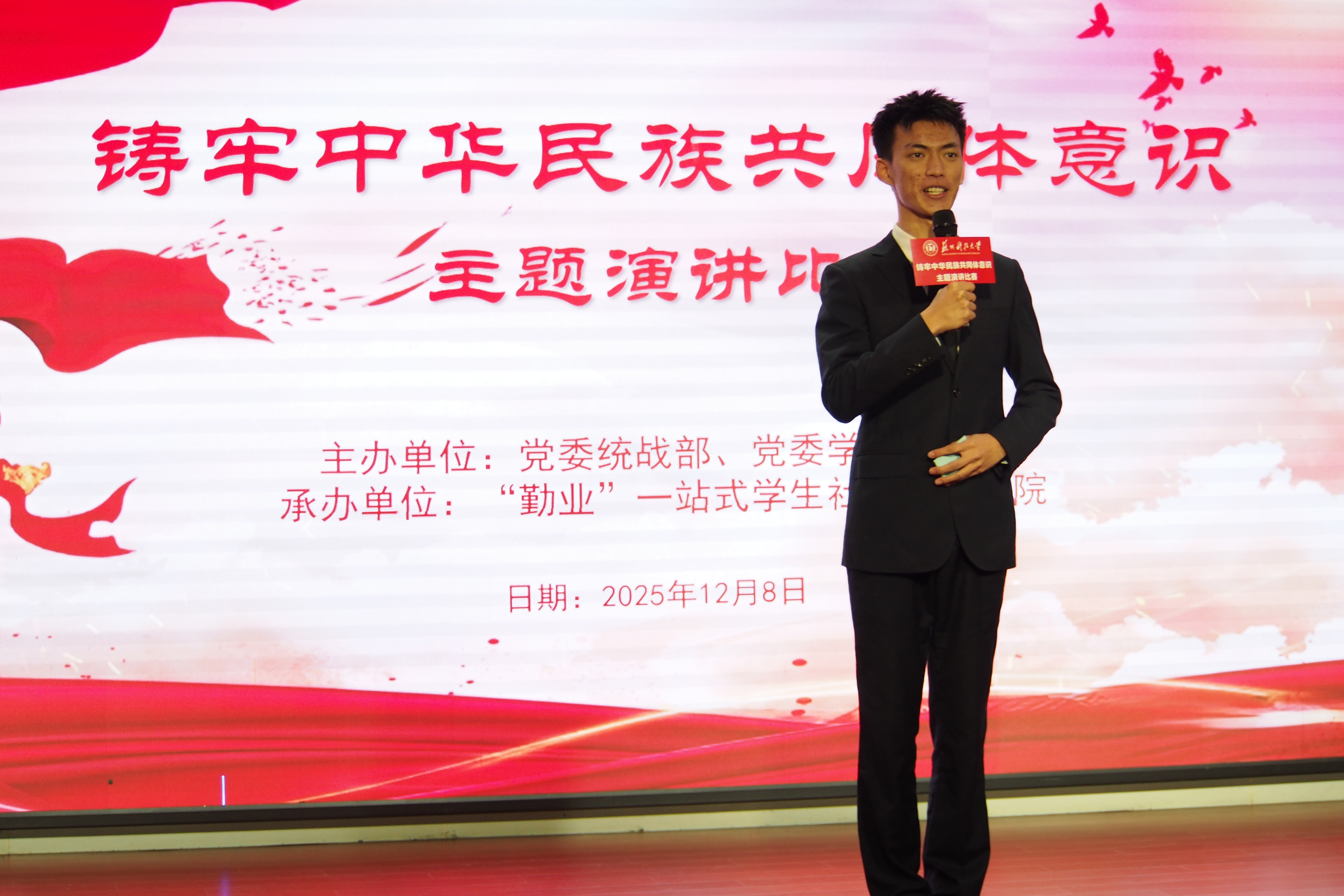 2025 年 12 月 8 日晚,必一运动天平校区图书馆报告厅内,“铸牢中华民族共同体意识”主题演讲比赛圆满落幕。本次比赛由公司党委统战部、党委员工工作部联合主办,“勤业” 一站式员工社区与必一运动bsport体育共同承办。公司党委统战部副部长焦李荣、校员工工作处副处长陈琰、公司党委副书记瞿晓庆、校语委唐丽珍、音乐公司马佳佳受邀担任比赛嘉宾及评委。