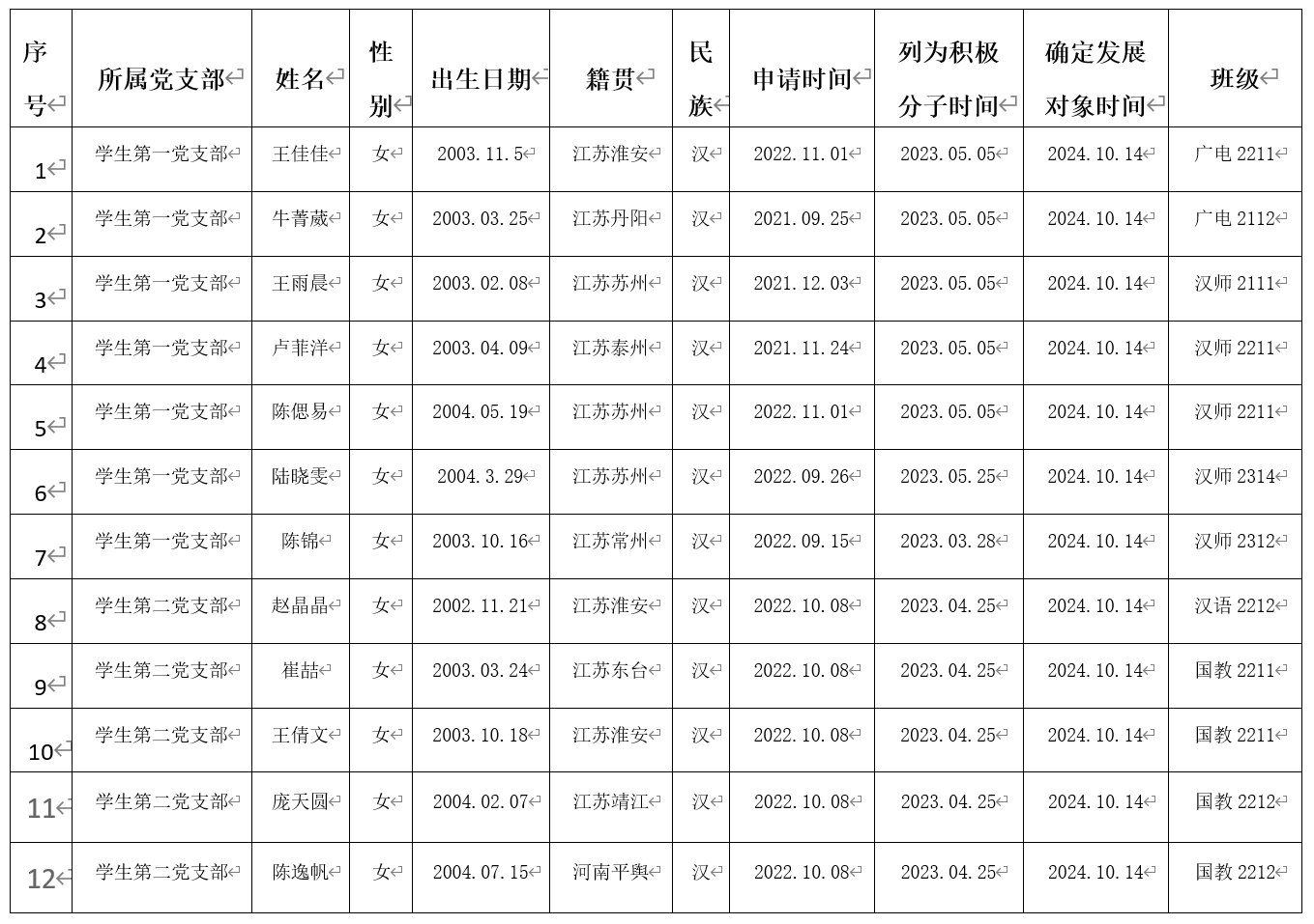 2024年11月28日,经公司党委预审,拟同意各党支部所报新发展预备党员名单,现按照党员发展程序予以公示,公示期为2024年12月4日至12月10日。在公示期内,如对公示对象有异议,请与公司党委联系反映,联系地点:五教307,联系电话:68092472。也可直接向公司党委组织部反映,联系地点:行政楼4204,联系电话:69379049。