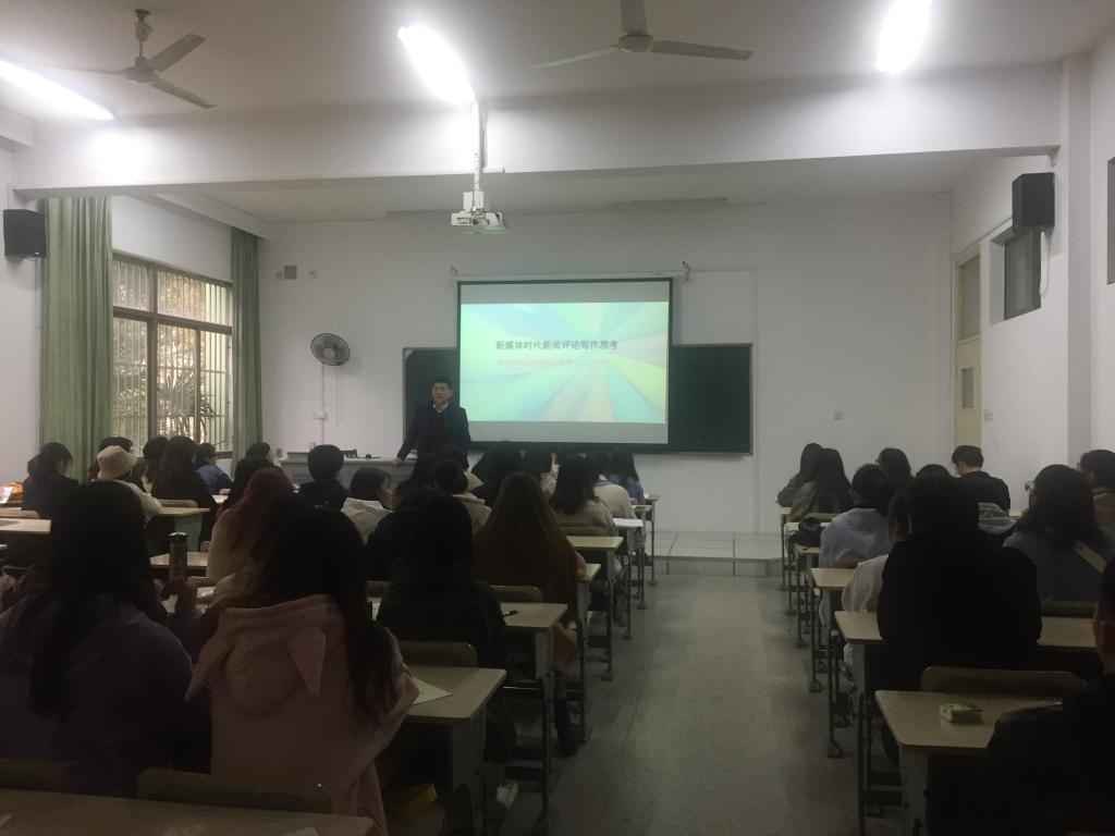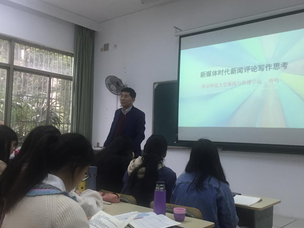 结合新媒体时代新闻舆论现状挑战,靖鸣教授对当下新闻评论的写作给出了具体应对方法。他对同学们提出了几点要求,要求新闻学子要提高自身新闻敏感、养成理论家的头脑、培养质疑较真批评意识和忧患意识、练就活动家的本领、更要学好扎实的专业技术,早日成为合格的新闻人。