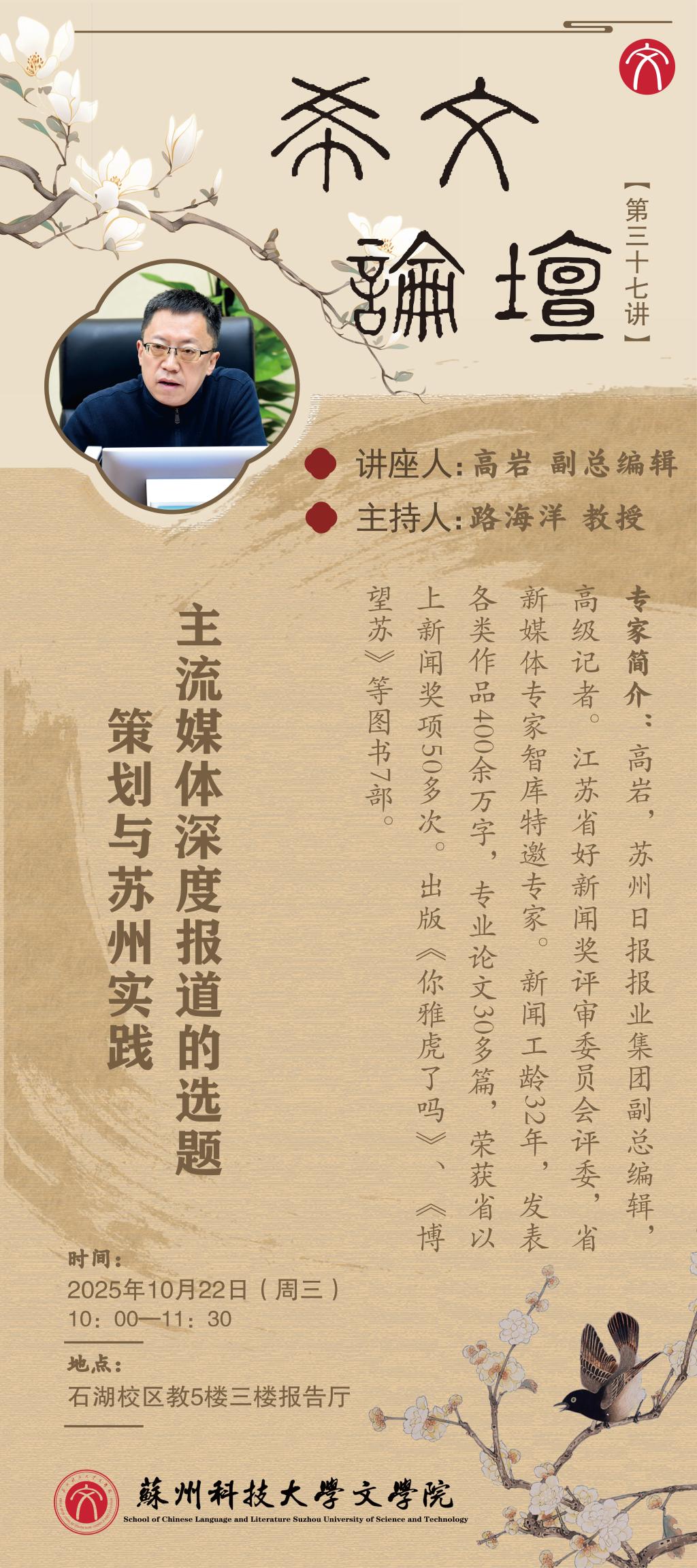 【希文论坛】第三十七讲:主流媒体深度报道的选题策划与苏州实践
