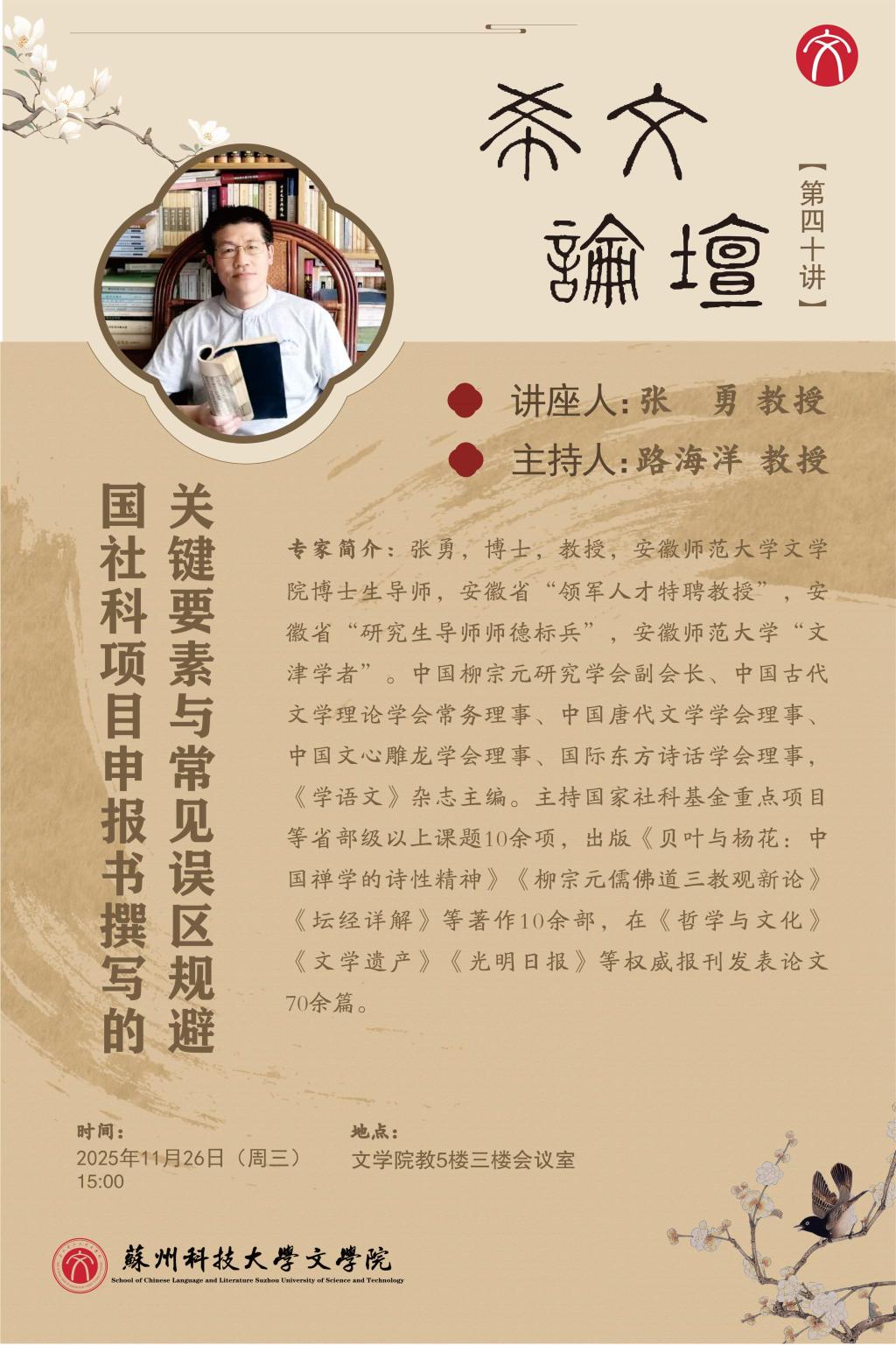 【希文论坛】第四十一讲:国家社科基金项目申报的技术与艺术