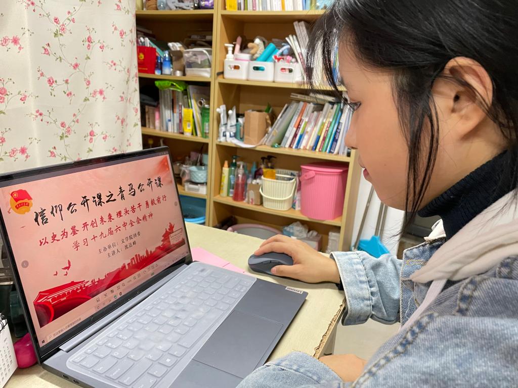 随后,沈达峰教授从党的十九届六中全会精神出发,与同学们一起回顾了建党以来的重大事件。从1921年嘉兴南湖上那一只风雨飘摇的小舟,发展到如今的作为全球第一大执政党的巍巍巨轮,我们党经历了无数艰难险阻和生死考验,我们绝不能忘记他们的付出,定要以史为鉴、开创未来。