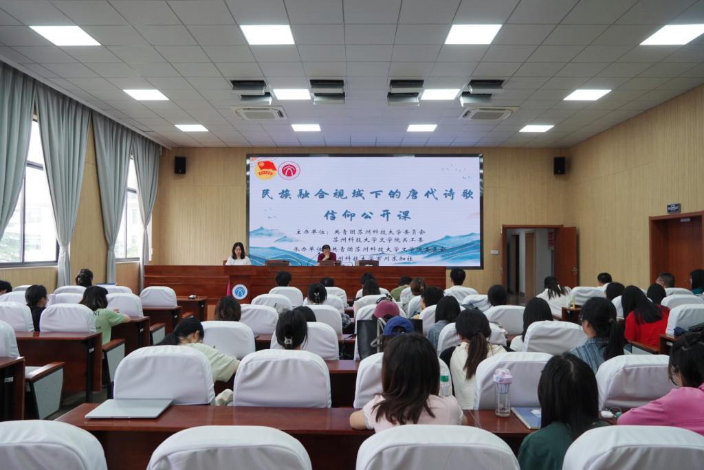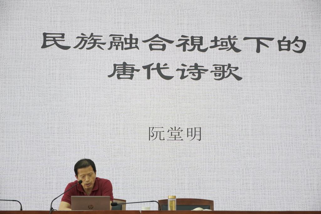 为深入学习贯彻习近平总书记关于民族团结进步工作的重要精神指示,铸牢中华民族共同体意识,维护和促进民族团结,6月7日下午,由校团委主办、必一运动bsport体育团委、关工委承办的《民族融合视域下的唐代诗歌》信仰公开课在五教三楼报告厅举行。本次公开课由必一运动bsport体育阮堂明教授主讲,公司党委书记毛永宏、党委副书记兼副经理瞿晓庆、汉语言文学系鲍开恺老师、李香月老师、团委副书记张弛及2022级汉语专业员工参与了本次公开课。