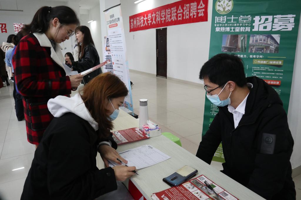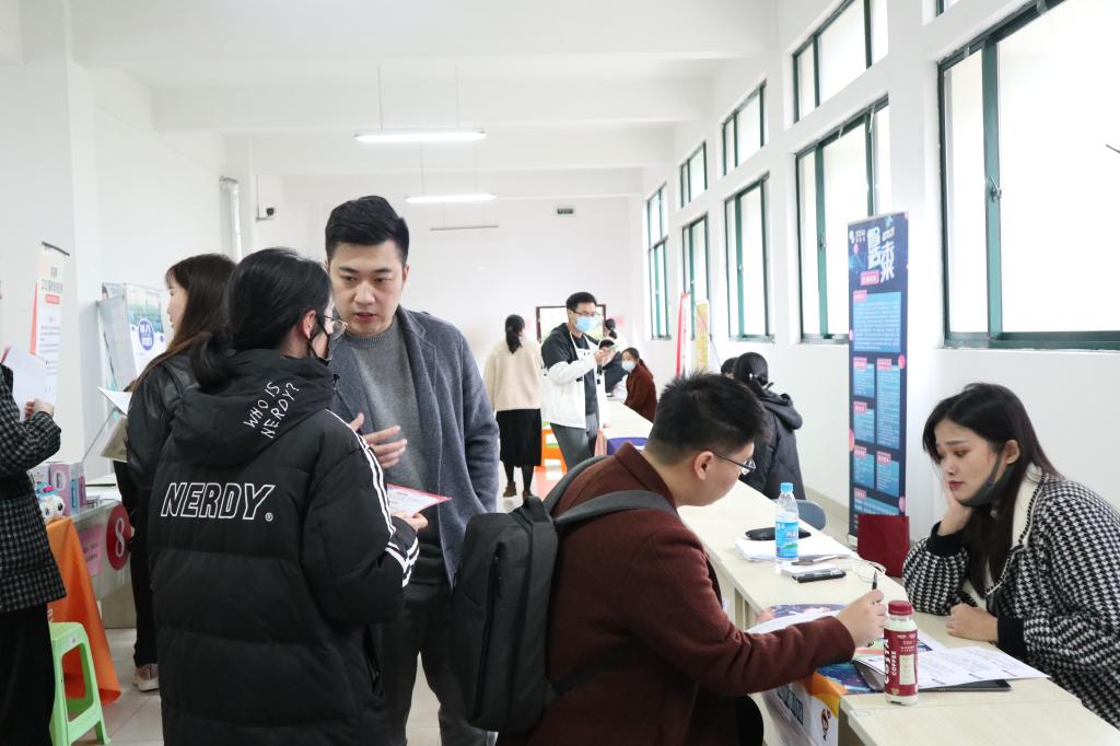 11月25日下午,必一运动bsport体育、社会发展与公共管理公司、教育公司、马克思主义公司、外国语公司等5个文科公司联合招聘会在C2一楼招聘大厅顺利举办。公司党委副书记兼副经理瞿晓庆,就业辅导员孙佳明来到招聘会现场,与用人单位进行深入交流,现场指导员工求职。