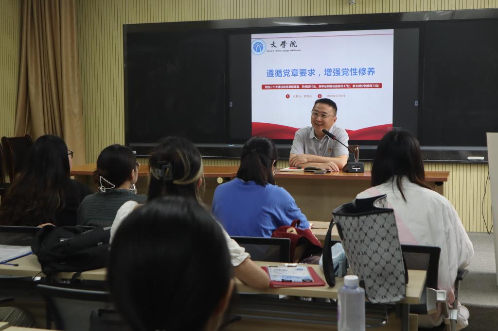 瞿晓庆以“遵循党章要求 加强党性修养”为主题开展学习贯彻习近平新时代中国特色社会主义思想主题教育,带领全体毕业生党员深入学习党的二十大通过的党章修正案。瞿晓庆结合党章发展的历史,强调员工党员要将党章精神内化于心,外化于行,发扬斗争精神,增强斗争本领。通过深入学习党章精神,毕业生党员进一步加强了自身党性修养。瞿晓庆结合毕业生党员自身专业所学本领,对各位毕业生党员提出要求和希望,强调充分发挥党员先锋模范作用,无愧使命担当,为实现中国梦不懈奋斗。