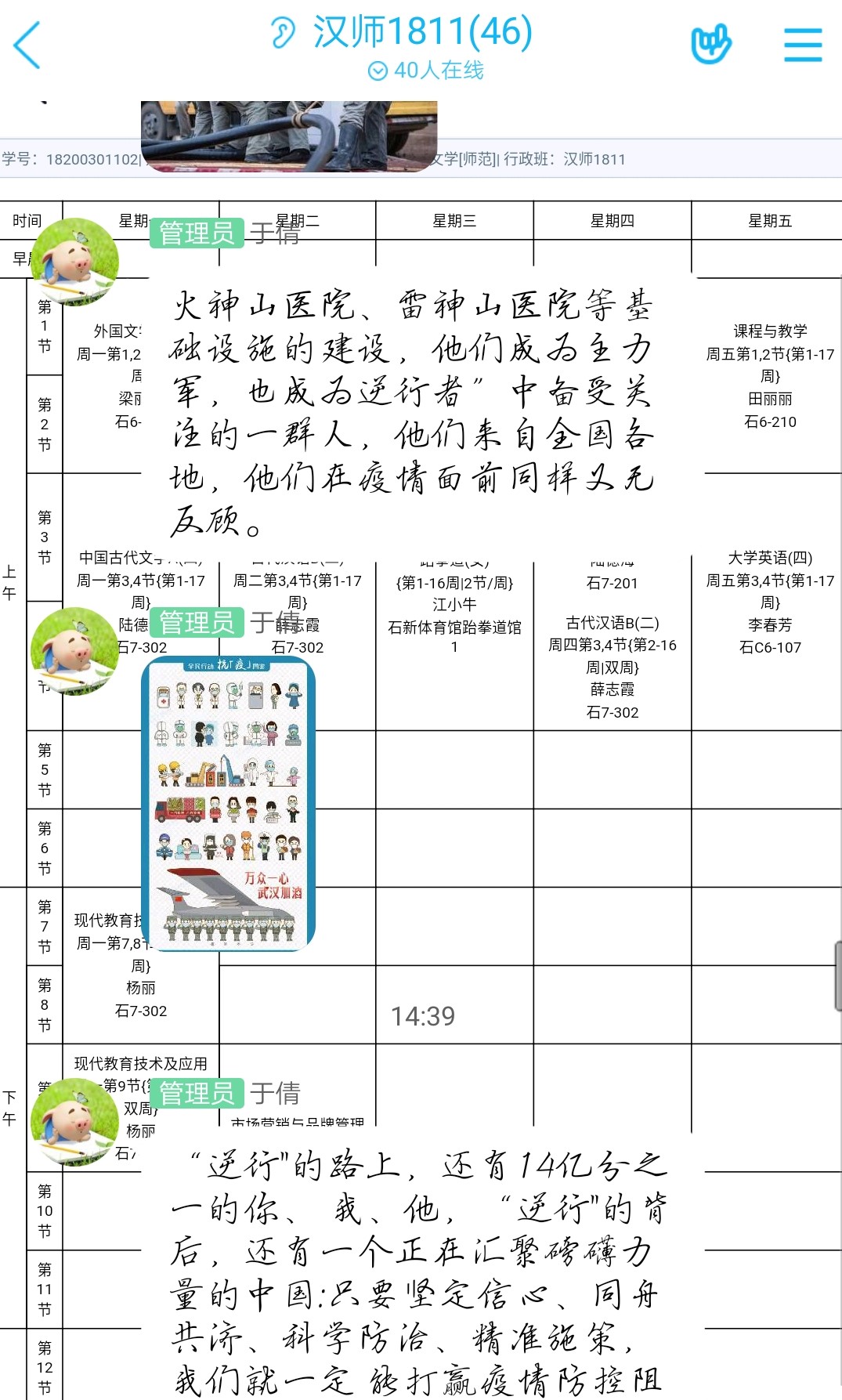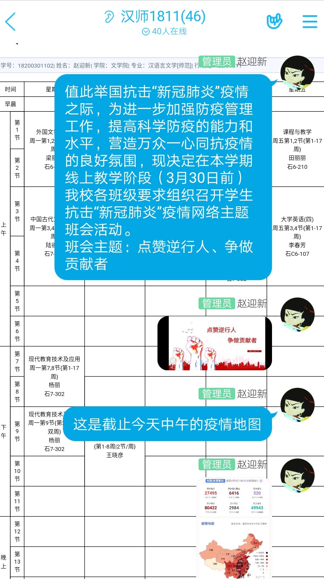 汉师1811班开展“点赞逆行人、争做贡献者”网络主题班会
