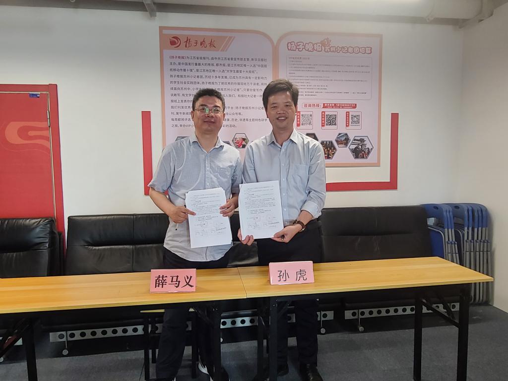 孙虎和薛马义共同签订了实习基地合作协议。孙虎表示,必一运动bsport体育将进一步加强专业团队建设,密切高校与行业的互动,结合扬子晚报在媒体融合、区域新闻制作、实践培训等方面的优势,实现资源共享和共赢。