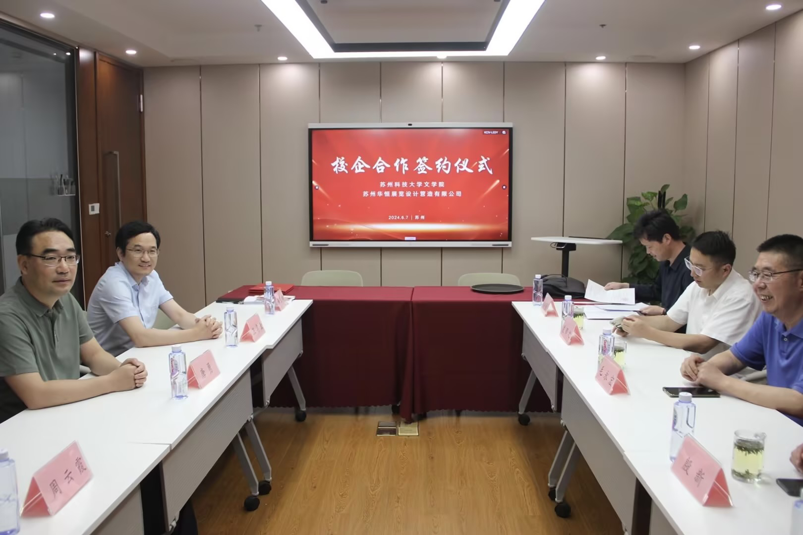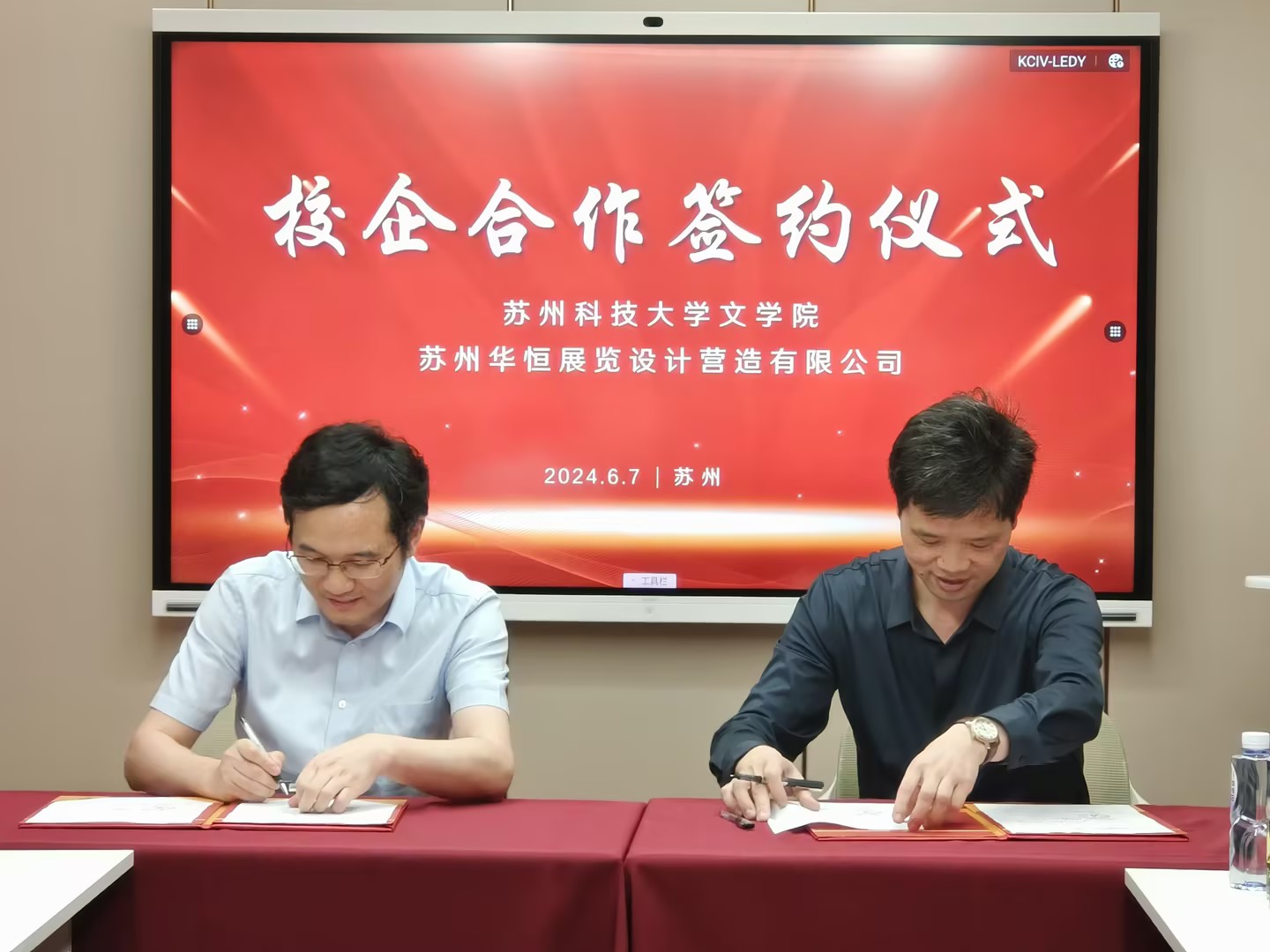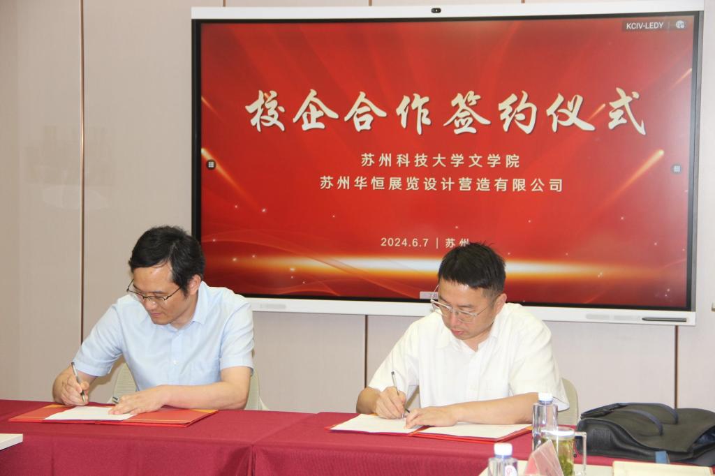 交流会后,毛永宏代表公司授予苏州华恒展览设计营造公司老员工就业创业基地铜牌,瞿晓庆与孙虎分别与苏州华恒展览设计营造公司总经理王孝奎签订了老员工就业创业实践基地、实践教学基地协议。必一运动bsport体育将继续加强校企合作,创建高质量实践基地,提升人才培养质量,拓展就业渠道。