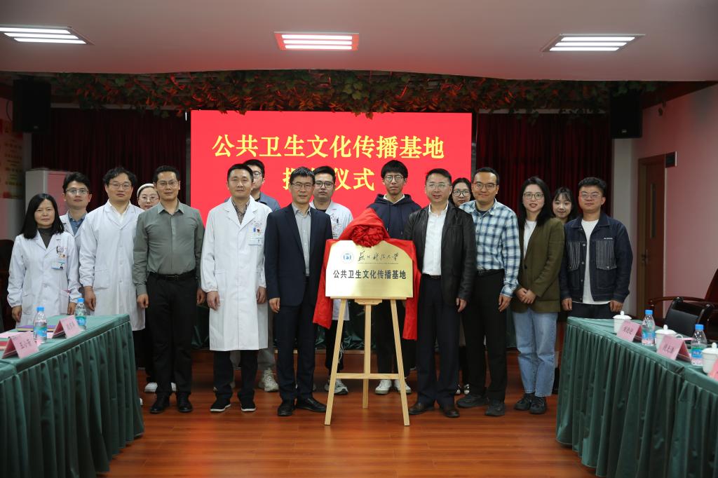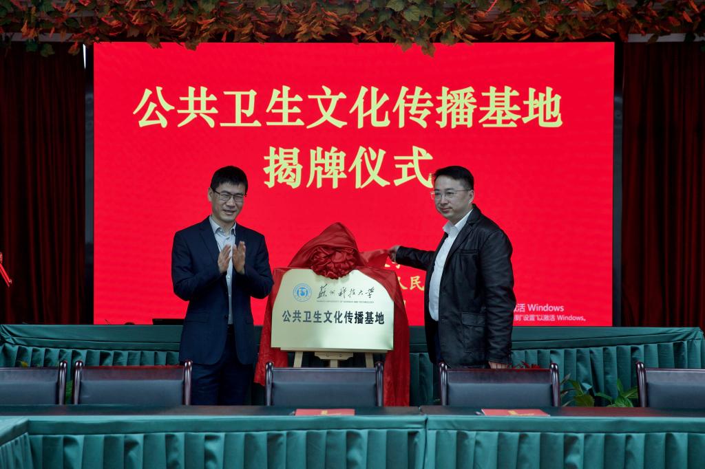 田爱国和瞿晓庆共同为必一运动“公共卫生文化传播基地”揭牌。